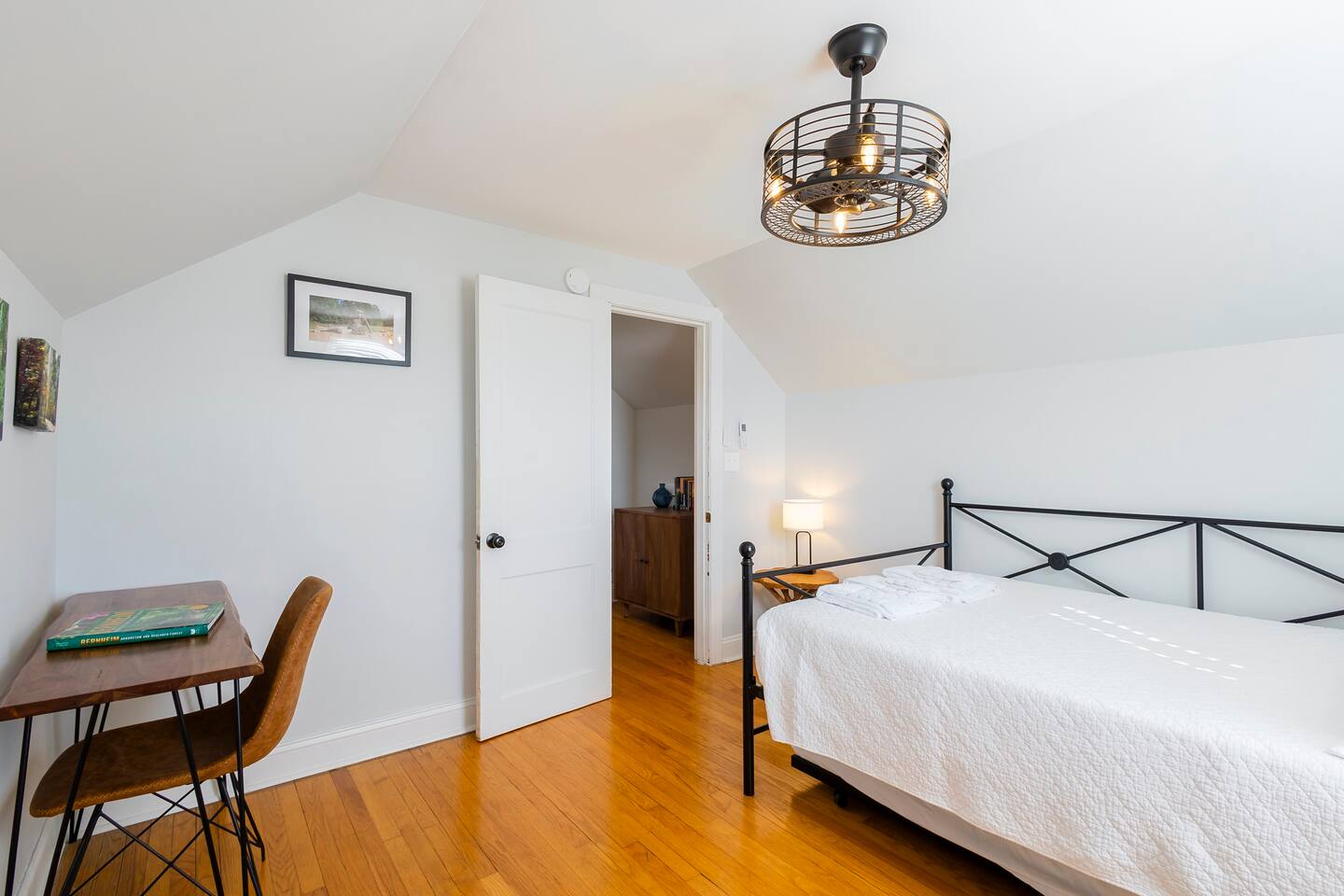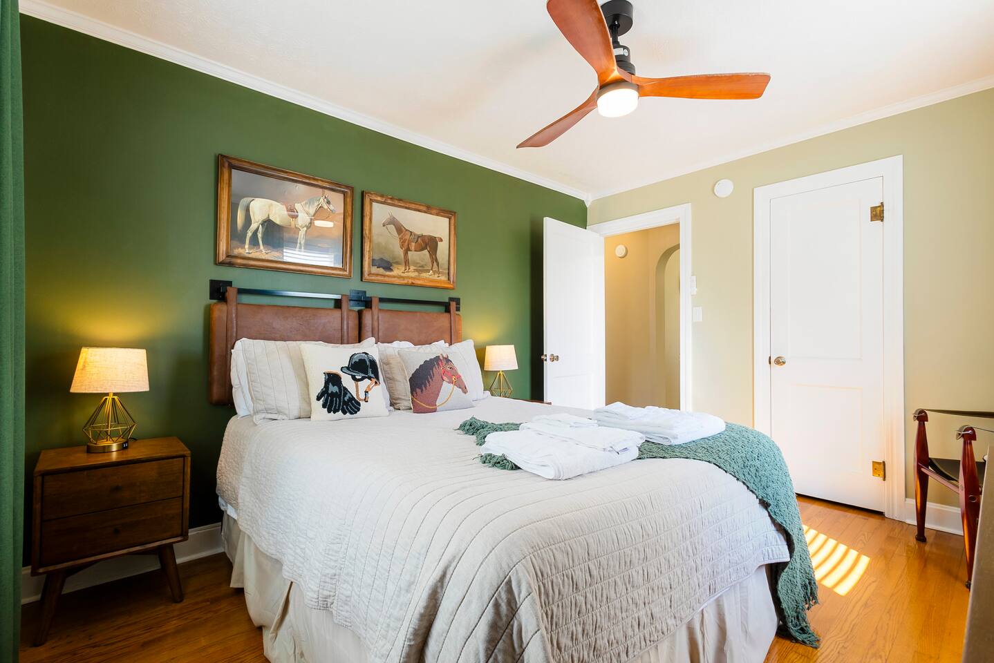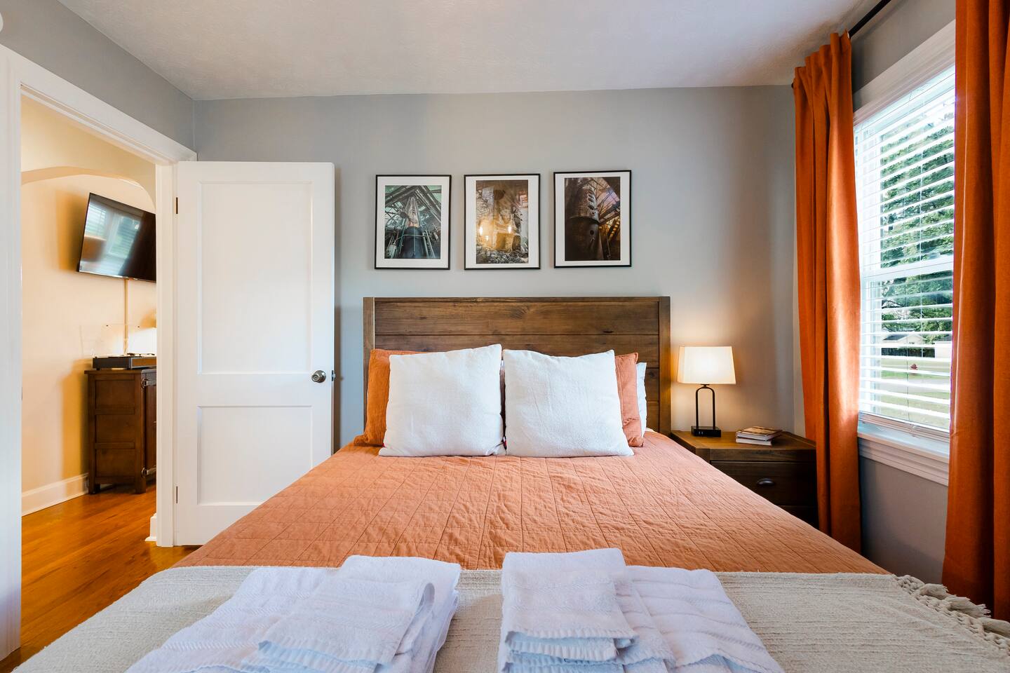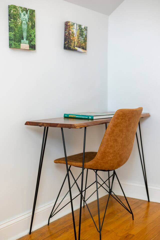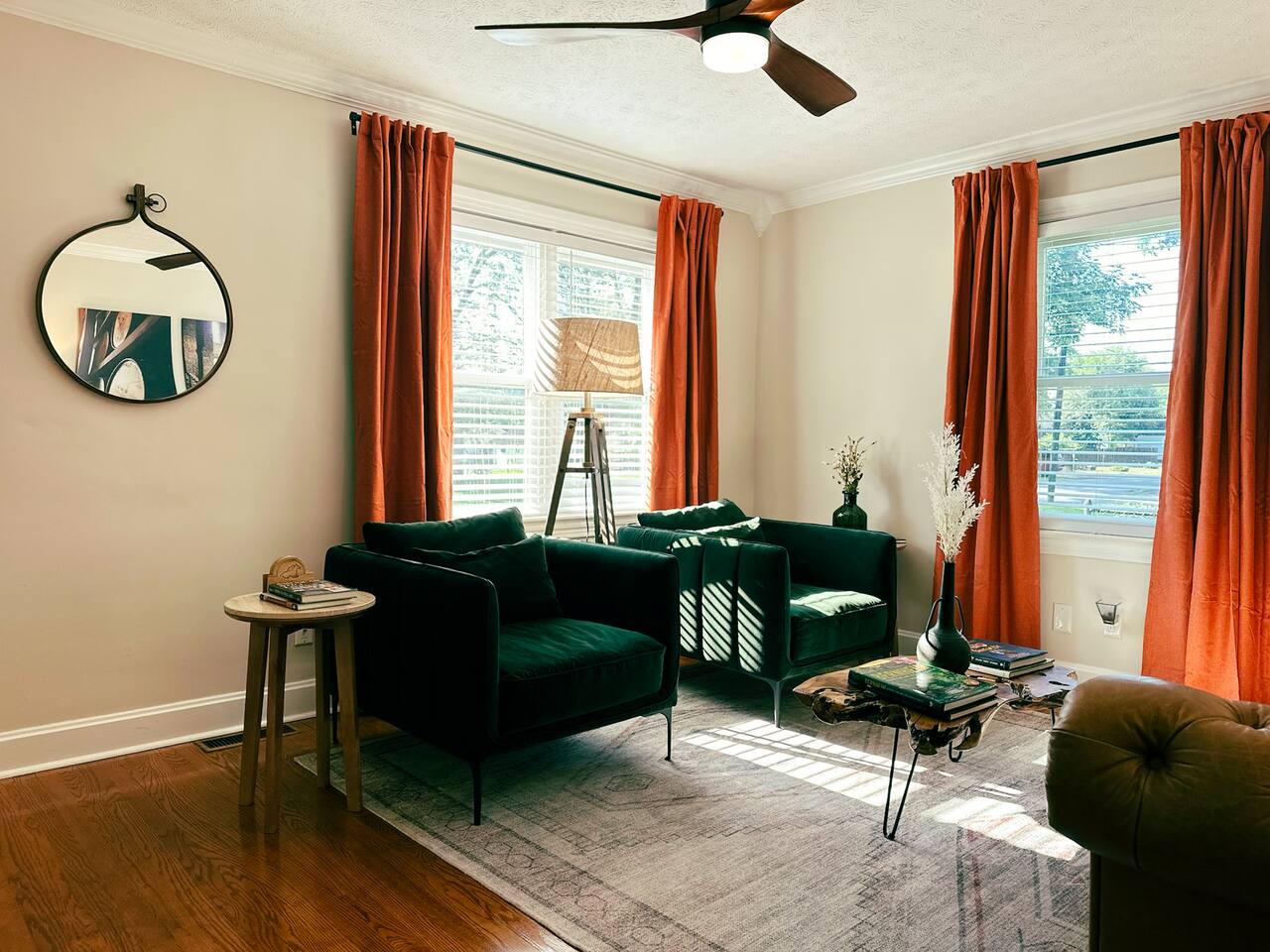 There’s a moment every morning at The Angel’s Share when the air outside smells like the inside of a barrel — warm oak, sweet grain, and something you can’t quite name. That’s the angel’s share drifting off the rickhouses at Barton 1792, right next door. It’s the only short-term rental on the Kentucky Bourbon Trail where you don’t just visit bourbon country — you wake up inside it. This 4-bedroom, 8-guest retreat sits on a quiet dead-end street just .2 miles from the 1792 distillery and less than a mile from downtown Bardstown. It’s your private basecamp for the trail — fully stocked with tasting kits, bourbon reads, a fire pit, yard games, and four named bedrooms that feel like they belong in a bourbon lover’s dream home. Come for the distilleries. Stay longer than you planned. ⎯▹ Thoroughbred Room (Bedroom 1): 1 Queen bed, ceiling fan, Roku TV, closet, USB/plug lamp ⎯▹ Bourbon Room (Bedroom 2): 1 Queen bed, ceiling fan, Roku TV, closet, USB/plug lamp ⎯▹ Kentucky Room (Bedroom 3): 1 Queen bed, ceiling fan, closet, USB/plug lamp ⎯▹ Bernheim Room (Bedroom 4): 1 Full/double daybed + 1 Twin trundle, desk, ceiling fan, USB/plug lamp • Fresh white hotel bedding + towels provided • 1 full bathroom with tub and shower • Temple Spa toiletries • Fully stocked kitchen with gadgets, crockpot, mixer, and more • Stainless cookware, Ninja blender, cocktail kit • Bourbon flight and tasting kits • LaVazza K-cups, drip maker, tea kettle, condiments • Dining area seats 8 guests • Living room w/ record player and a curated collection of bourbon trail vinyl, Roku TV + bourbon books • Gas grill + solo stove smokeless fire pit + patio dining • String Light walkway and fire pit with Adirondack chairs in backyard • Patio with Al Fresco Dining for 8 • Yard Games + Cornhole + Bucket Golf • In-home washer + dryer • Iron + ironing board • Central heat + upstairs separate HVAC units • Fast Wi-Fi • Dedicated workspace • Exterior doorbell camera Why The Angel’s Share? Because no other property puts you this close to the action. You can hear the history. You can smell the craft. And after a full day on the trail, you come home to a fire pit, a flight poured from your own tasting kit, and Adirondack chairs under string lights. This isn’t just a place to sleep between distillery tours — it’s the reason guests come back to Bardstown. • Steps from Barton 1792 distillery and rickhouse • Quiet dead-end street • Free parking for 4 vehicles on property • Backyard fire pit + outdoor games • Gas grill and patio with dining table for cookouts • Smart lock + Ring security system • Walkable to downtown + Bourbon Festival events • Custom bourbon tasting boards available and an abundance of cocktail wares Nearby Things to Do ~ Bardstown Downtown ⎯▹ 1 mile Boutiques, bourbon bars, and historic architecture Willett Distillery ⎯▹ 8 min drive Classic Bardstown distillery with on-site bar My Old Kentucky Home State Park ⎯▹ 10 min drive Tour historic mansions + picnic in the gardens Bernheim Forest ⎯▹ 15 min drive Trails, sculptures, and nature walks in a forest reserve Bourbon Festival Venue ⎯▹ Walkable in good weather! ⎯▹ 1/2 mile Home of the annual Kentucky Bourbon Festival Nearby Dining ~ Old Talbott Tavern (American) ⎯▹ 1 mile Mammy’s Kitchen (Southern) ⎯▹ 1 mile The Rickhouse Restaurant (Steakhouse) ⎯▹ 1 mile Neat Bourbon Bar (Bourbon Bar) ⎯▹ 1 mile Scout and Scholar (Brewery and Restaurant) ⎯▹ 1 mile FAQs ➤ Is parking available? Yes, free parking for up to 4 vehicles in the driveway. ➤ Are pets allowed? No pets allowed. ➤ Is the property suitable for children? Yes, but caution advised with stairs. ➤ Is smoking allowed? No smoking or vaping indoors; fines apply. ➤ Is the neighborhood quiet? Yes, on a dead-end street next to the distillery with minimal traffic. ❤️ Meet Your Host Lifelong Kentuckian, I love bourbon country and my guests who come to visit. Need anything at all? I’m just a text away! Your host, —Marc