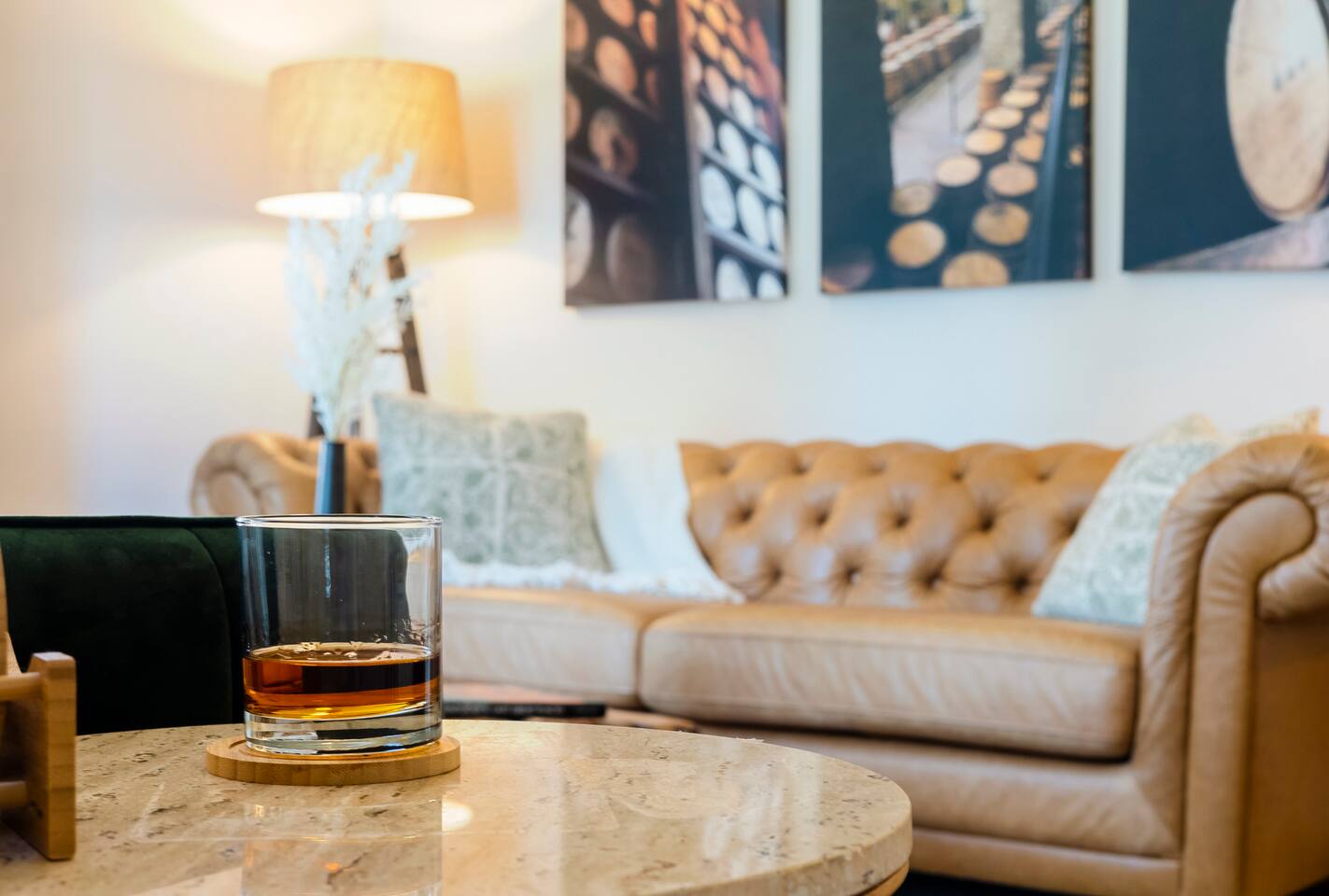At this spacious bourbon lover’s basecamp, you’ll be close enough to breathe in the angel’s share from the rickhouses at Barton 1792 and secluded enough to sleep soundly after a full day of tastings. Enjoy your coffee before heading to downtown Bardstown for the day (just a mile away). Back home, flip through curated bourbon reads, light the fire pit, pour a flight to enjoy, or play games and dine under the stars. A cozy, comfortable home base for enjoying the best of the Bourbon Trail.