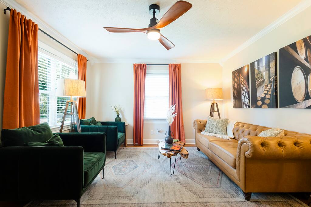 At this spacious bourbon lover’s basecamp, you’ll be close enough to breathe in the angel’s share from the rickhouses at Barton 1792 and secluded enough to sleep soundly after a full day of tastings. Enjoy your coffee before heading to downtown Bardstown for the day (just a mile away). Back home, flip through curated bourbon reads, light the fire pit, pour a flight to enjoy, or play games and dine under the stars. A cozy, comfortable home base for enjoying the best of bourbon country.