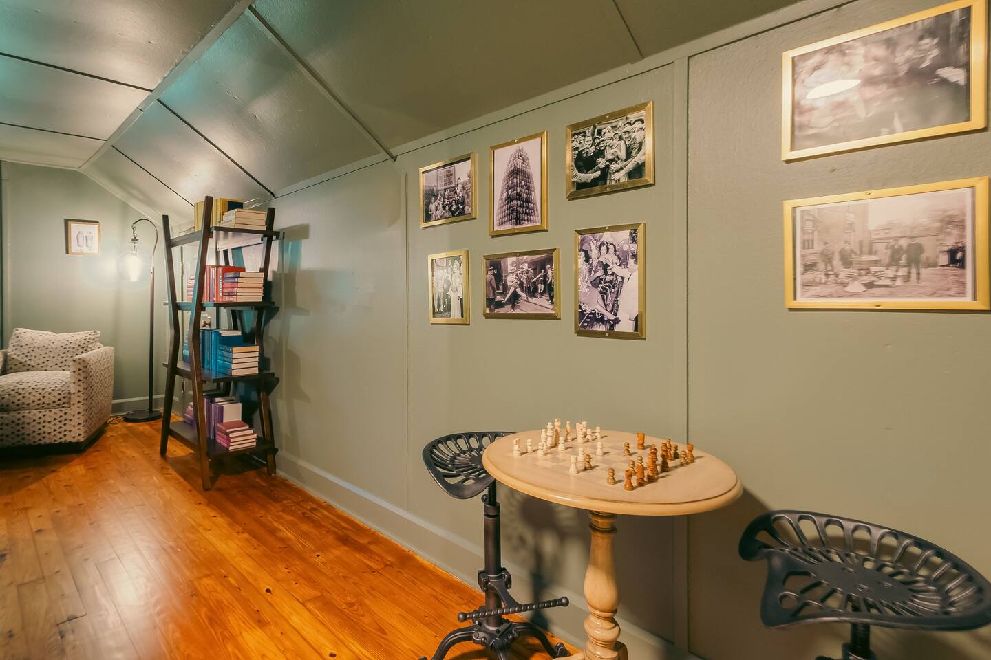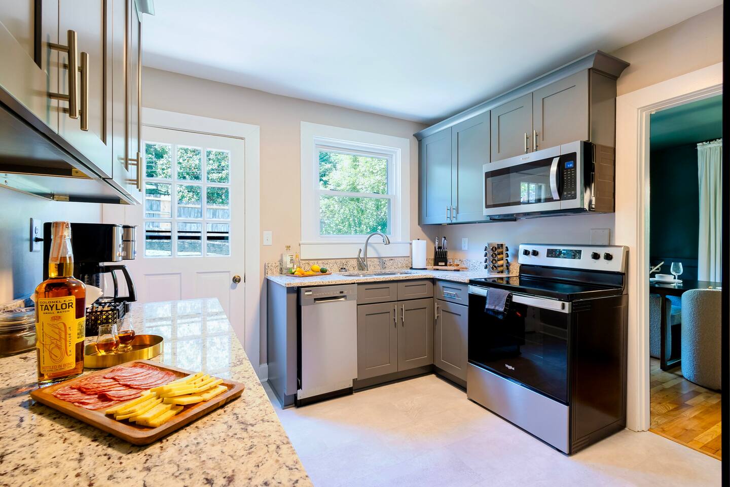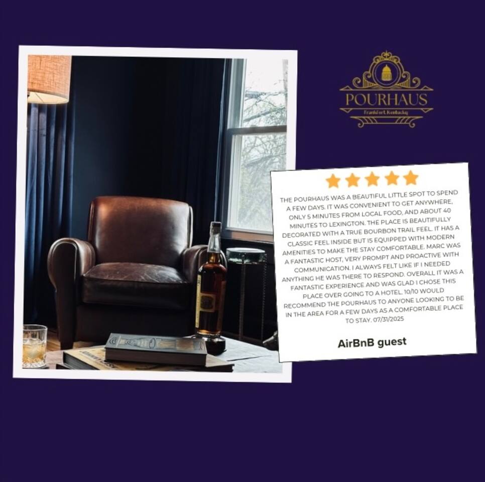 Welcome to PourHaus, your bourbon-inspired hideaway in the heart of Frankfort’s historic Capitol District. This 1920s home blends vintage charm with modern comfort, creating a cozy, walkable launchpad for your Kentucky adventures. LIVING & DINING: Unwind in the living room, where you can spin a record on the vintage player, stream a movie on the Roku TV, or simply relax by the indoor fireplace. The adjacent dining room channels a Roaring Twenties steakhouse vibe, complete with a sidebar and cocktail kit, perfect for mixing your favorite drinks. KITCHEN: The fully stocked kitchen has everything you need for home-cooked meals, including baking dishes, a blender, and a dishwasher for easy cleanup. Start your day with complimentary LaVazza coffee or tea. BEDROOMS: Three well-appointed bedrooms await, each offering: * A Queen-size Sealy Posturepedic bed with hotel-grade linens * A Roku TV for private viewing * A fan and a convenient USB lamp BATHROOMS: Refresh in one of the 1.5 bathrooms, stocked with Temple Spa toiletries. The full bathroom features a bathtub, ideal for a relaxing soak. UNIQUE SPACES: For a unique retreat, head upstairs to the Bourbon Book Loft to dive into a book, challenge a friend to chess, or enjoy a classic game. OUTDOOR OASIS: Step outside into your private, fenced backyard. The string-lit patio features an outdoor dining area, a gas grill for cookouts, and a fire pit table—the perfect private spot to enjoy bourbon flights and a cigar under the stars. Feel free to use the herb planter for your cocktails and meals! Experience Overview ~ • 1 block from Kentucky State Capitol • 2.5 mi to Buffalo Trace, 7 to Castle & Key • 12 mi to Woodford, 17 to Four Roses • Quiet historic district • Private Patio w/ gas fire pit + grill • Self check-in w/ lockbox Nearby Things to Do ~ Kentucky State Capitol ⎯▹ 5 min walk Grand architecture + local monuments Buffalo Trace Distillery ⎯▹ 5 min drive Iconic bourbon tours + tastings Castle & Key ⎯▹ 12 min drive Historic distillery with scenic grounds Downtown Frankfort ⎯▹ 10 min walk Shops, riverwalk, cafés + tap house Keeneland Racetrack ⎯▹ 22 min drive World-class horse racing + events Nearby Dining ~ Bourbon on Main (American) ⎯▹ 1 mi Andy’s Bakery (Pastries + Coffee) ⎯▹ 10 min walk The Stave (Southern) ⎯▹ 15 min drive Buddy’s Pizza (Pizza) ⎯▹ 1.5 mi Goodwood (Brewery and Restaurant) ⎯▹ 1 mi FAQs ➤ Is parking available? Yes, free driveway parking included. ➤ Are pets allowed? Sorry, no pets. ➤ Is the property kid-friendly? Yes, though note the stairs. ➤ Is smoking allowed? Not indoors—please use outdoor areas only. ➤ Is the home ADA accessible? No, access requires steps. ❤️ Meet Your Host I love sharing Kentucky’s rich culture with curious travelers. Need a hidden gem or bourbon tip? I’m just a text away! Your host, —Marc