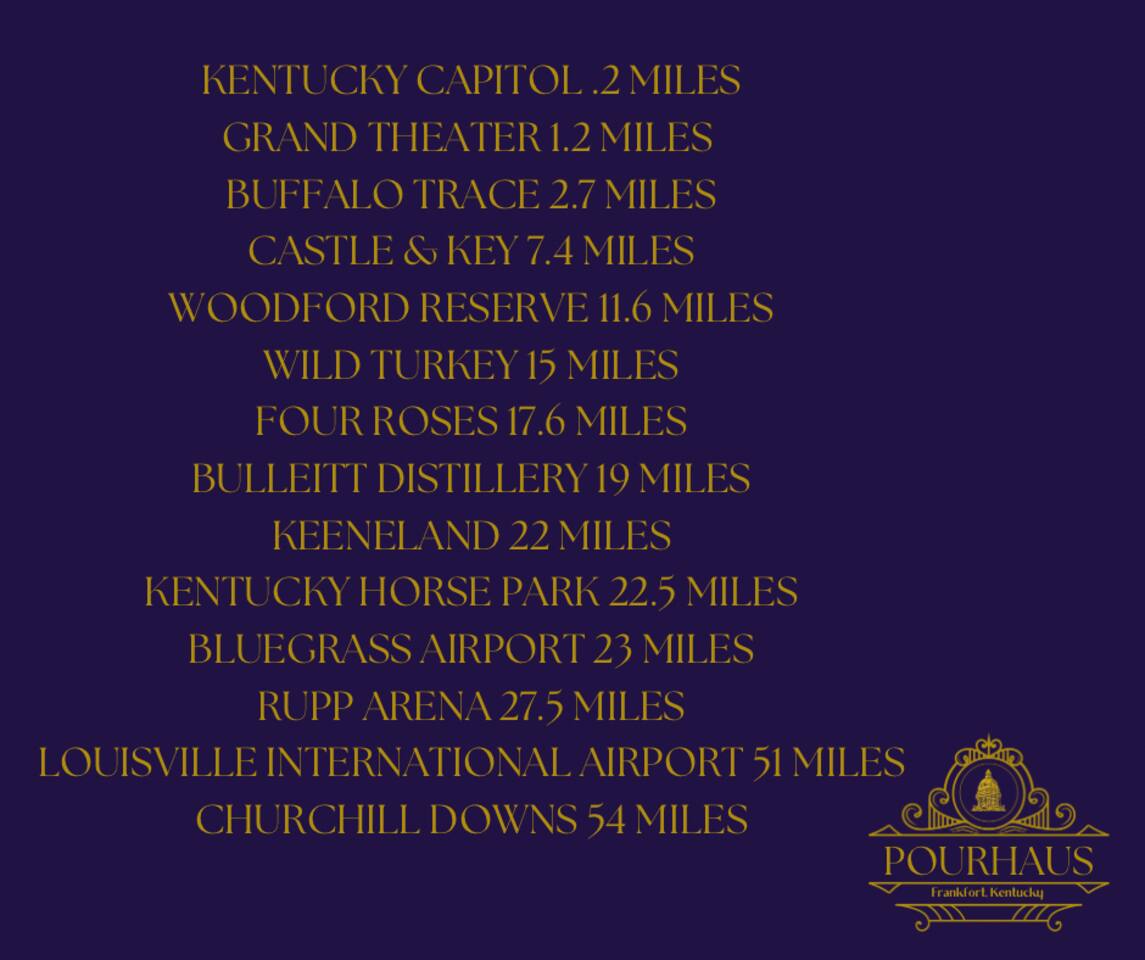 Historic Charm in the Heart of Kentucky’s Capital PourHaus sits in the Special Capitol District, a walkable, scenic neighborhood recognized as both a local and National Historic District. Just a 3–5 minute stroll from the Kentucky State Capitol, the area is steeped in history and full of architectural gems—from Victorian homes and former military barracks to Frank Lloyd Wright–inspired designs. It’s the perfect neighborhood for a morning walk, evening bourbon stroll, or a deeper dive into Kentucky’s cultural heart.